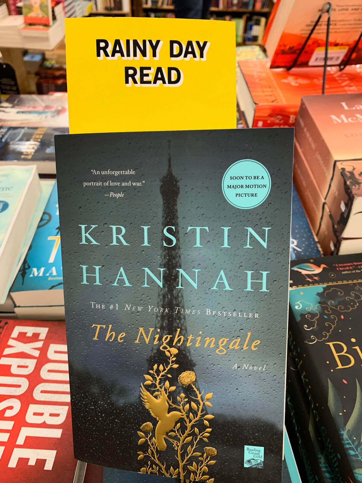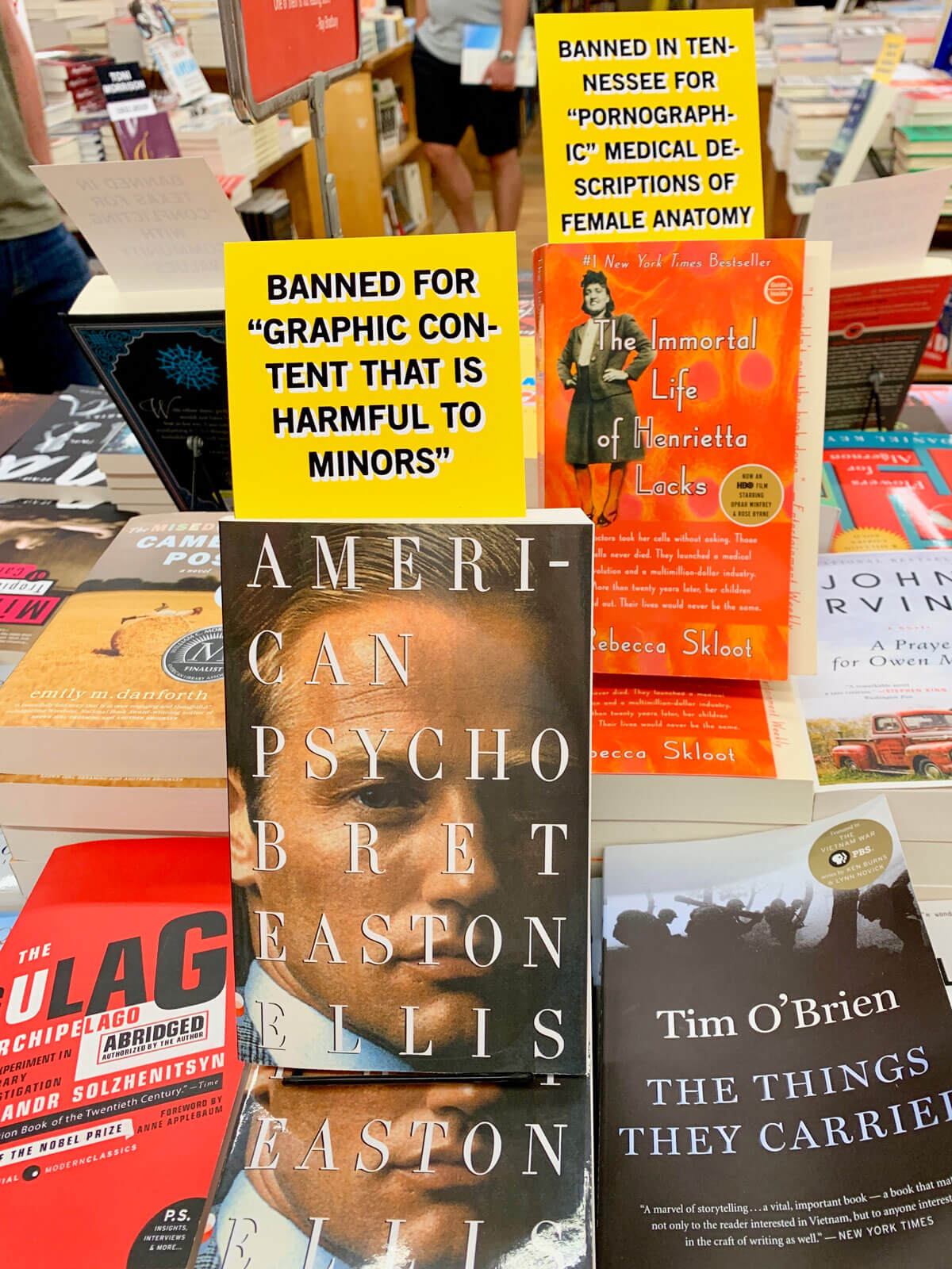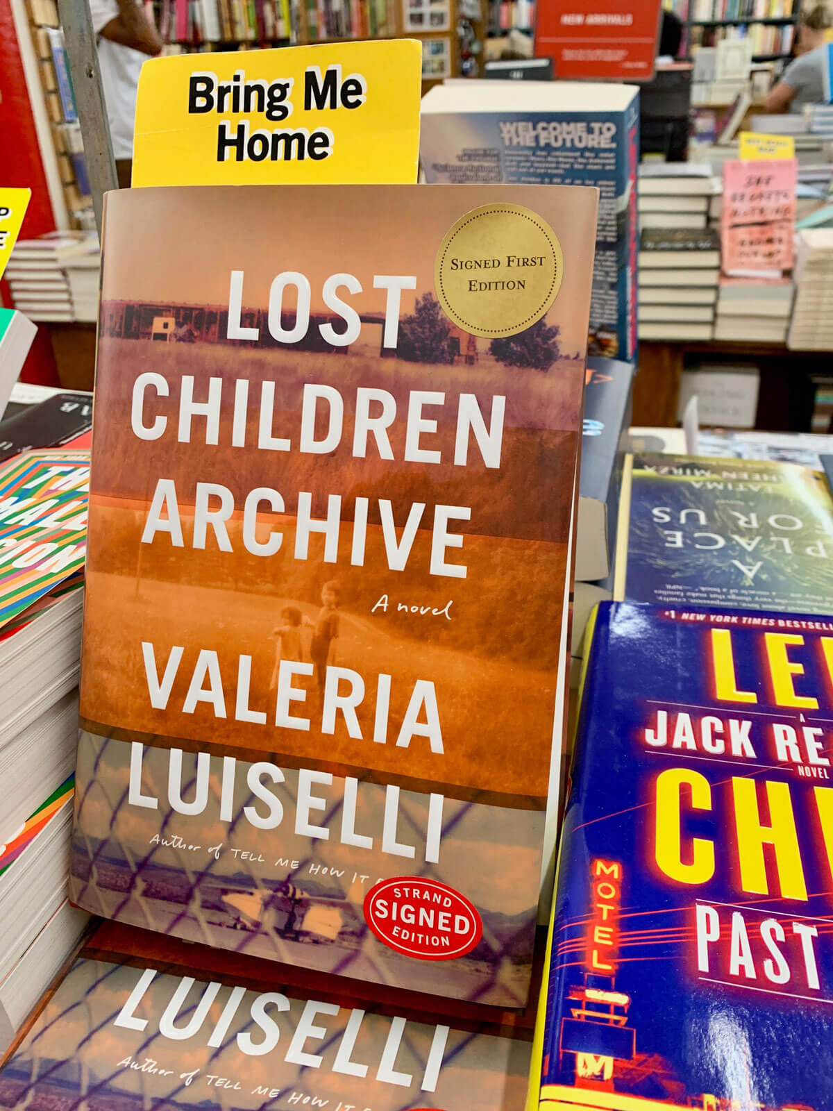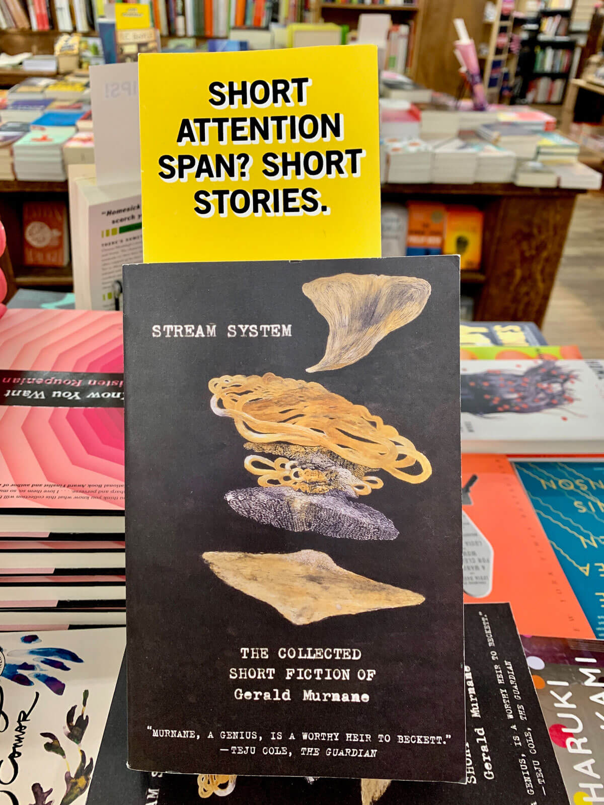 Neben den Tischen gibt es spezielle Review-Regale, die mit Zusammenfassungen der Buchhändler bestückt sind. Diese schreiben ihre ganz persönlichen Leseeindrücke auf Karteikarten und stecken sie hinter eine Plexiglasscheibe zum Buch.