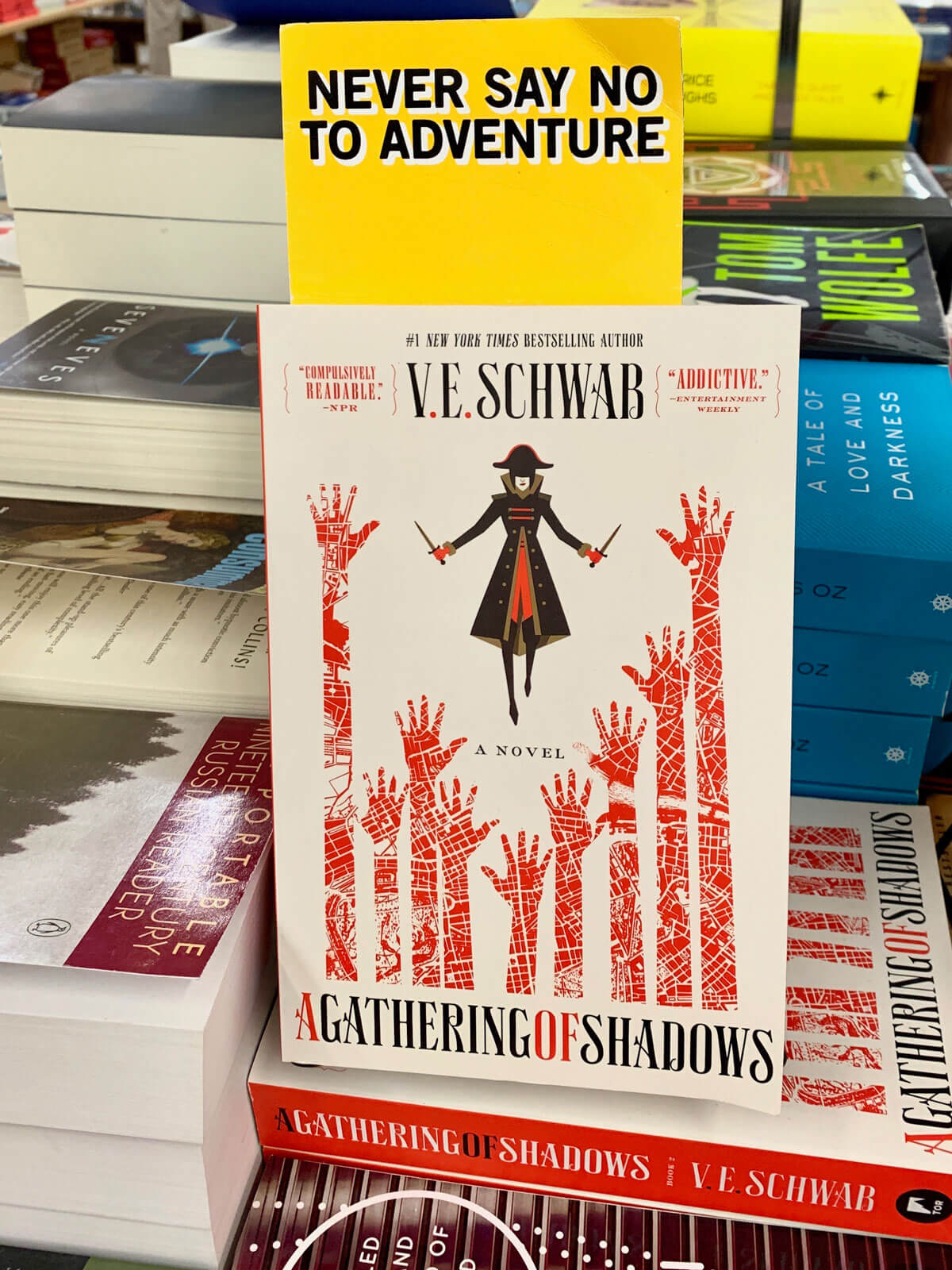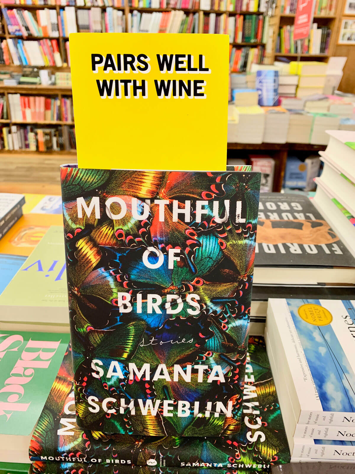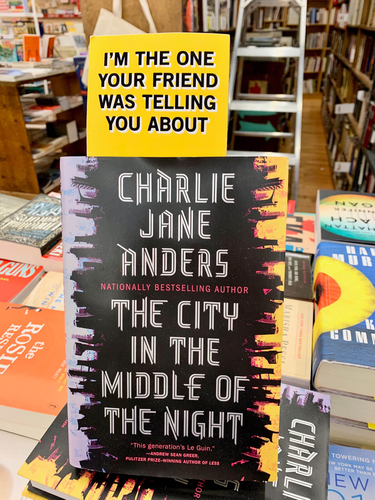 Übrigens – auch deutsche Buchläden haben richtig gute Ideen. Im „Siebter Himmel“ in Köln werden zur jecken Jahreszeit den Büchern Clownsnasen aufgesetzt. Und aktuelle Besprechungen aus dem Feuilleton stehen praktischerweise direkt hinter dem Titel im Regal. Einfach rausnehmen, durchlesen und kaufen.